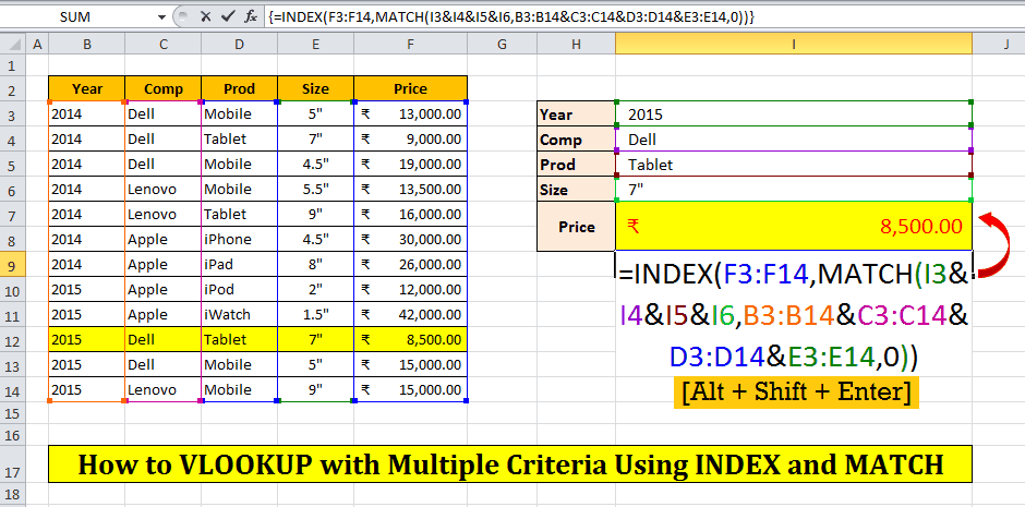 Learn how to use index match in this excel tutorial. Now as you are matching these two criteria our formula will be something like: This formula that index/matches with a substring finding in a string works well. The index match formula can look up for value with multiple criteria . This formula doesn't work in excel 2003 or below versions.