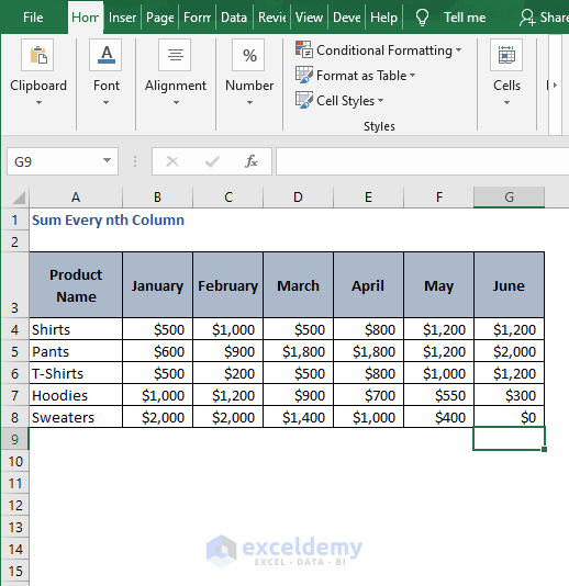 Slightly change the formula as shown below. =mod(row(a2),$c$2)=0 · select cell c2 and go to data>validation and select list from the allow: . When we don't want to sum all the rows in a worksheet, and instead, we might only be interested in specific rows. Will show you how to sum every nth column using formula and vba code. So the sumif formula will only sum the rows where the value in the range (you can say virtual mod formula range) is 0.
